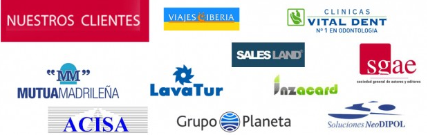 Hotusa Hotels Mutua Madrileña Grupo Planeta Previsora General Vitaldent SGAE Viajes Iberia | Caher. Servicios al Marketing Gestora de Arrendamientos Comerciales Canarios AFODES Lavatur Ydilo UPYD |